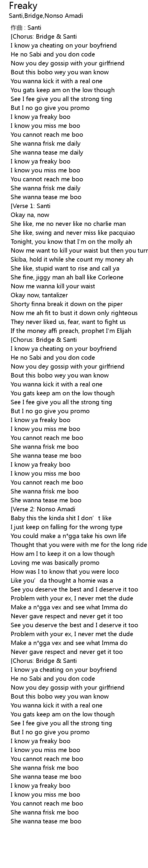 | [02:59.254] | Make a n*gga vex and see what Imma do |