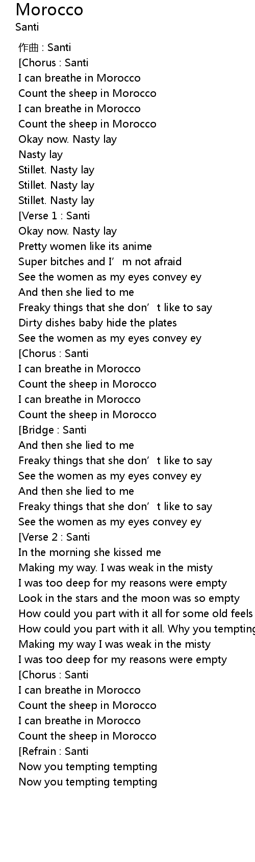| [00:28.609] | I can breathe in Morocco |