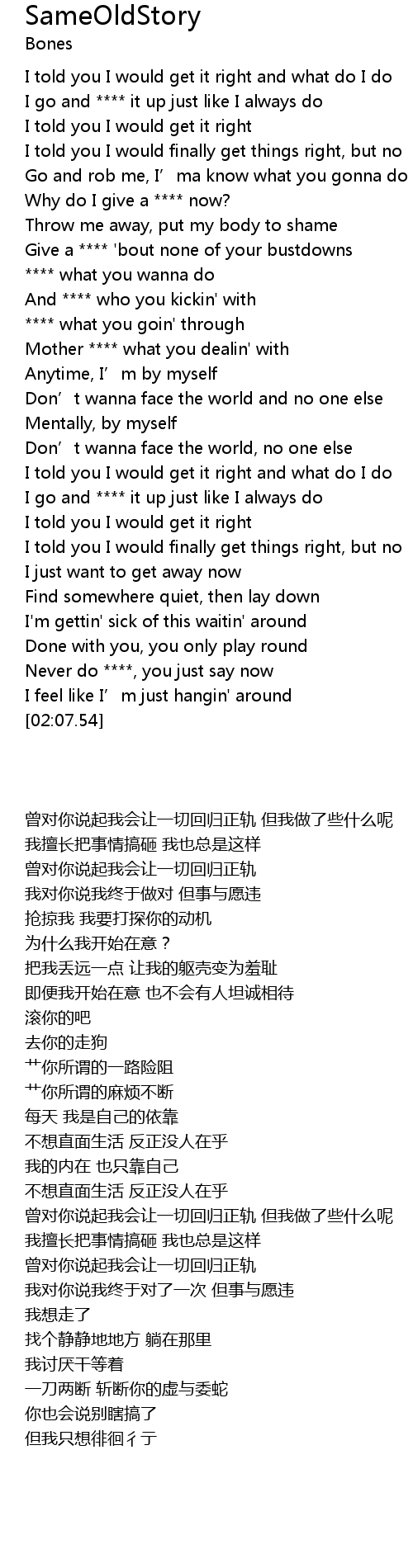 | [01:40.67] | I go and **** it up just like I always do |