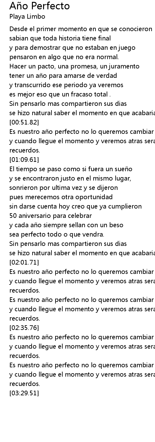| [00:52.51] | Es nuestro a o perfecto no lo queremos cambiar |