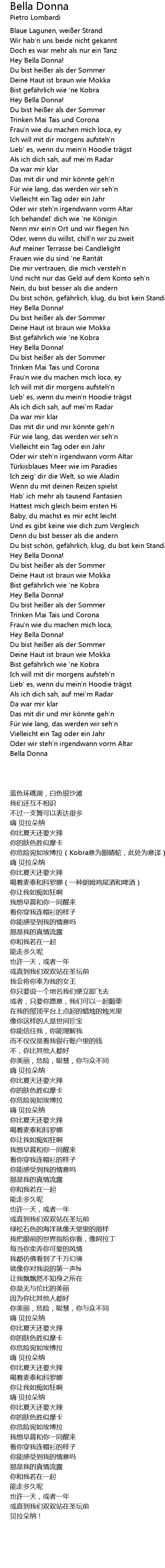 | [02:23.90] | Hey Bella Donna! |