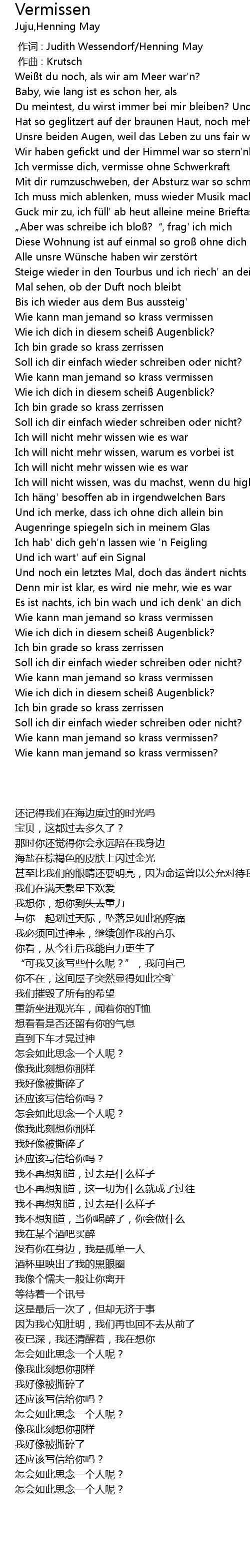 | [00:00.000] | zuò cí : Judith Wessendorf Henning May |