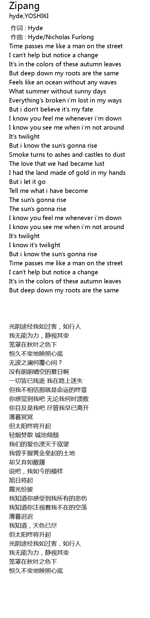 | [00:00.000] | zuo ci : Hyde |
