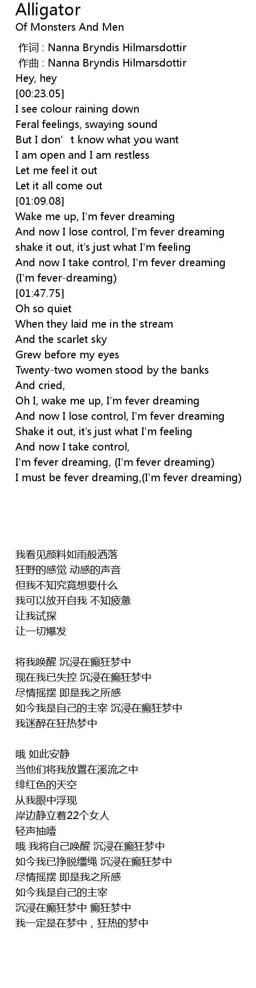 | [01:44.81] | (I'm fever-dreaming) |