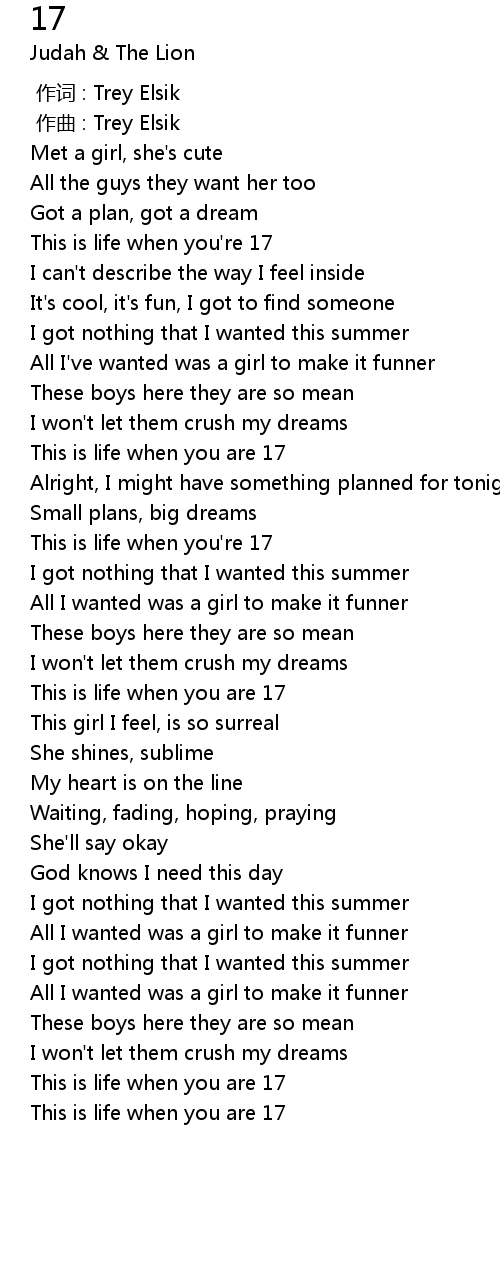 | [01:40.100] | This is life when you are 17 |