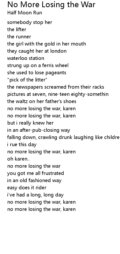 no more losing the war, karen |