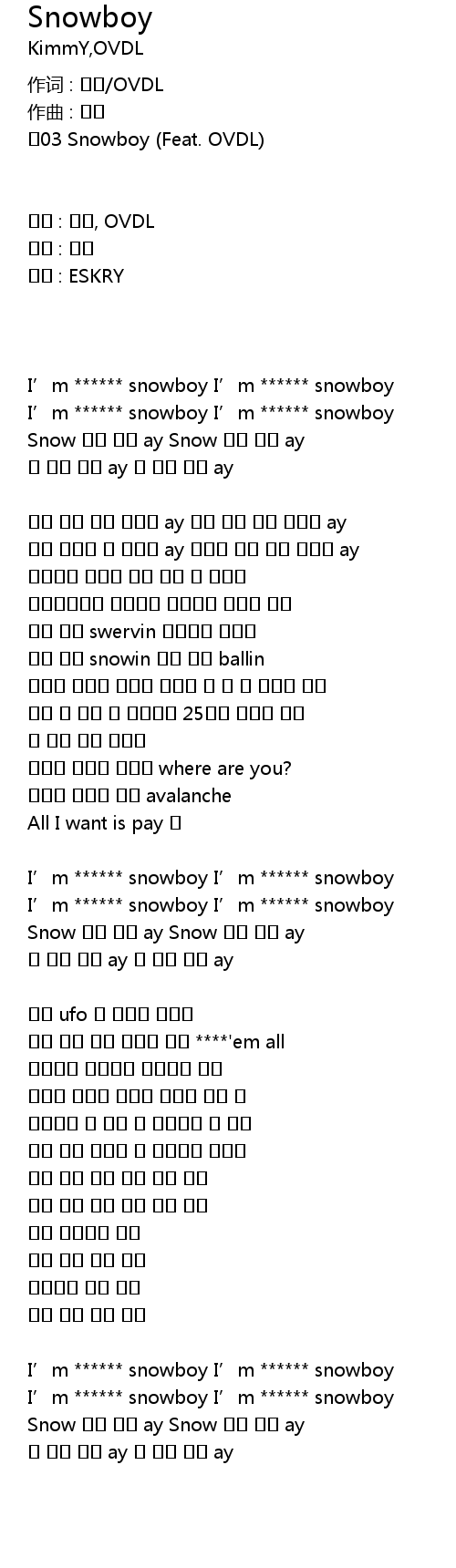 Snowboy Lyrics