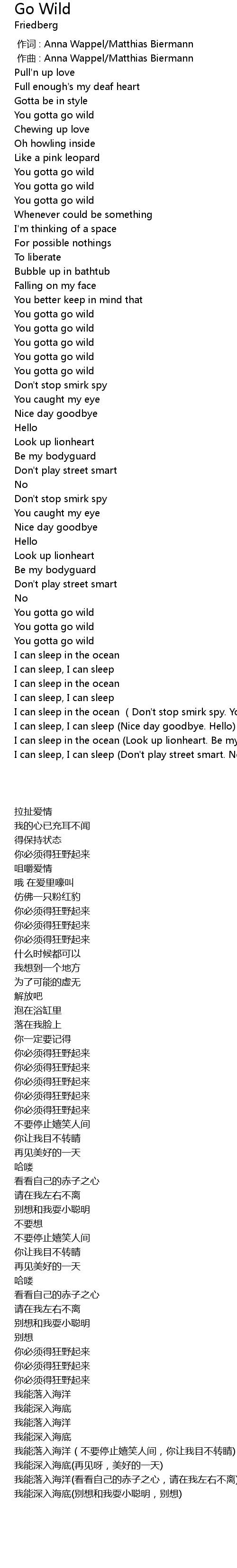 | [03:04.70] | I can sleep in the ocean (Look up lionheart. Be my bodyguard) |
