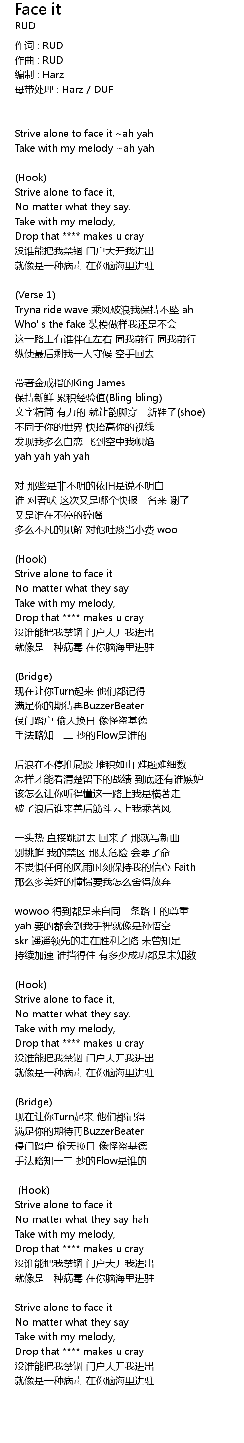 | Tryna ride wave chéng fēng pò làng wǒ bǎo chí bù zhuì ah | |