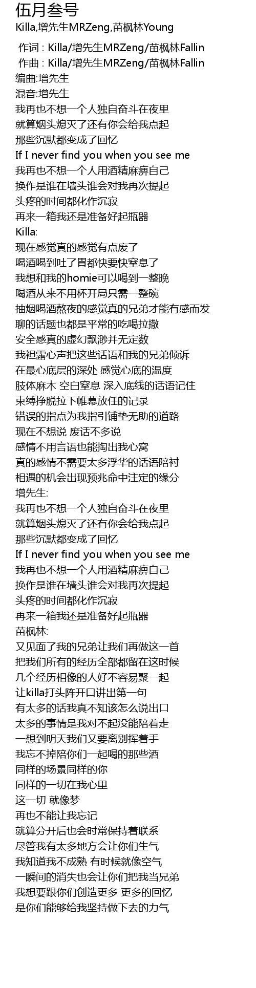 | [00:00.000] | 作词 : Killa/增先生MRZeng/苗枫林Fallin |