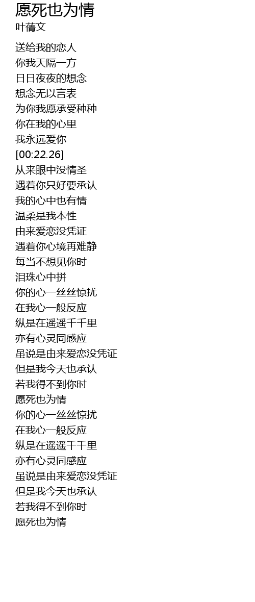 | [01:58.03] | yuàn sǐ yě wéi qíng |