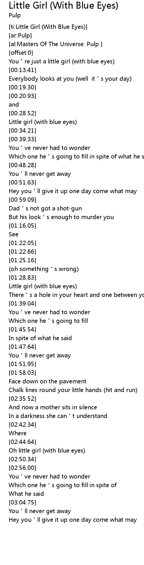 | [02:47.20] | Oh little girl (with blue eyes) |