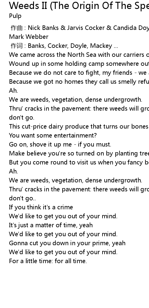 | [00:53.45] | We are weeds, vegetation, dense undergrowth. |