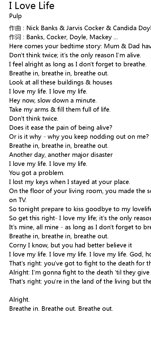 | So get this right I love my life it' s the only reason I' m alive. | |