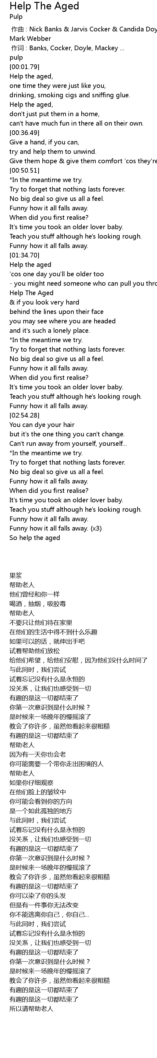 | [01:35.09] | Help the aged |