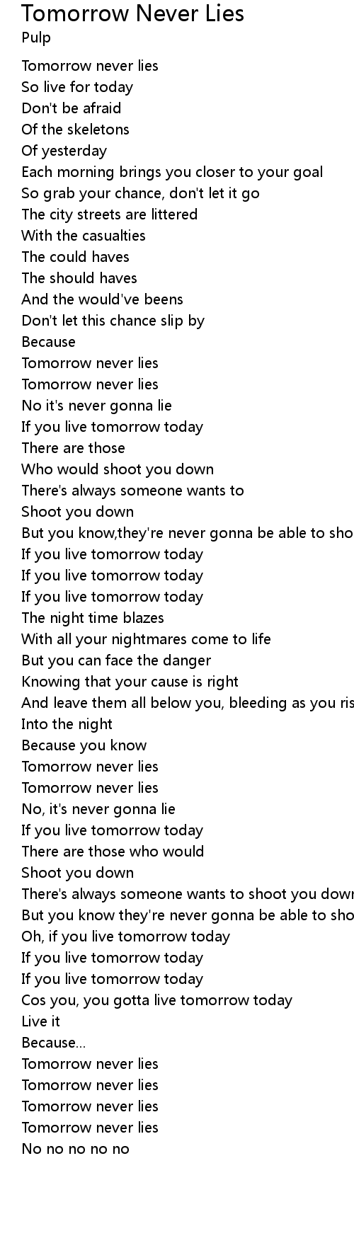 Tomorrow never lies |