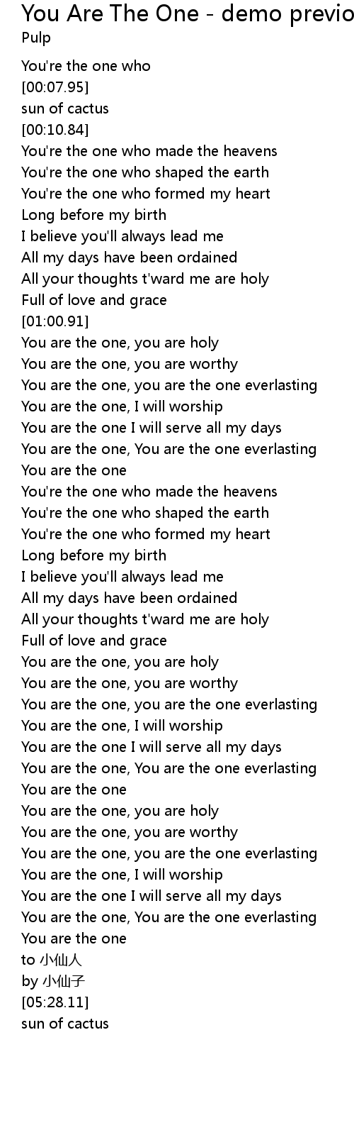| [01:04.06] | You are the one, you are holy |