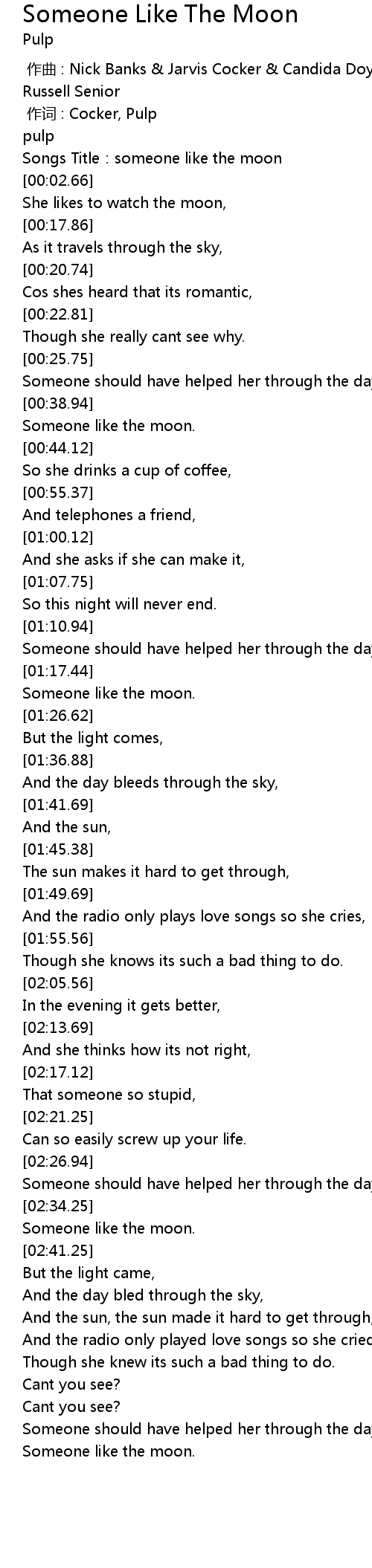 | [00:00.22] | 作词 : Cocker, Pulp |