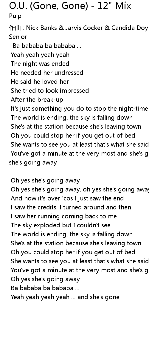 | Song | O.U. (Gone, Gone) - 12" Mix |