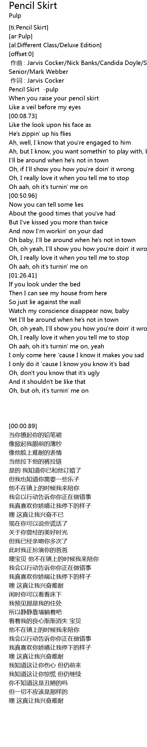 | [00:00.00] | zuò qǔ : Jarvis Cocker Nick Banks Candida Doyle Steve Mackey Russell Senior Mark Webber |