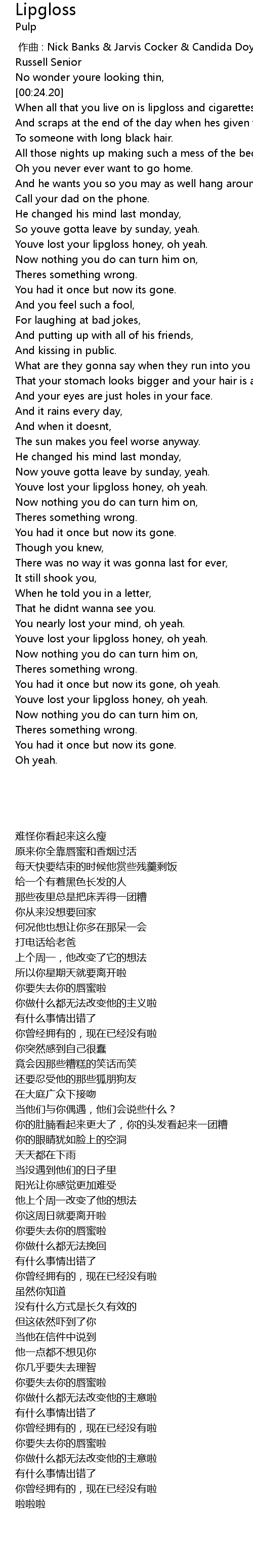| [00:55.83] | Youve lost your lipgloss honey, oh yeah. |