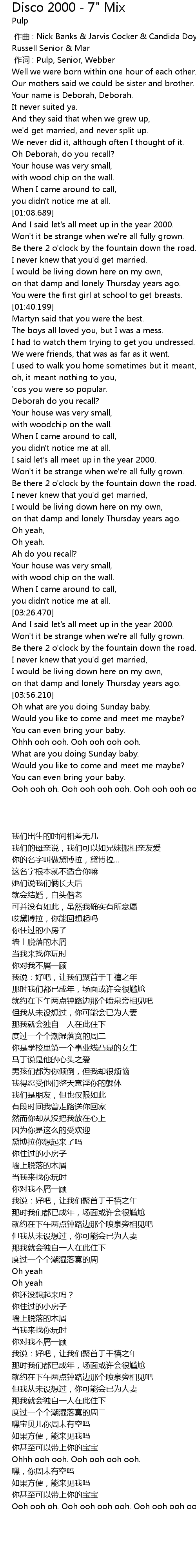 | [00:01.00] | 作词 : Pulp, Senior, Webber |