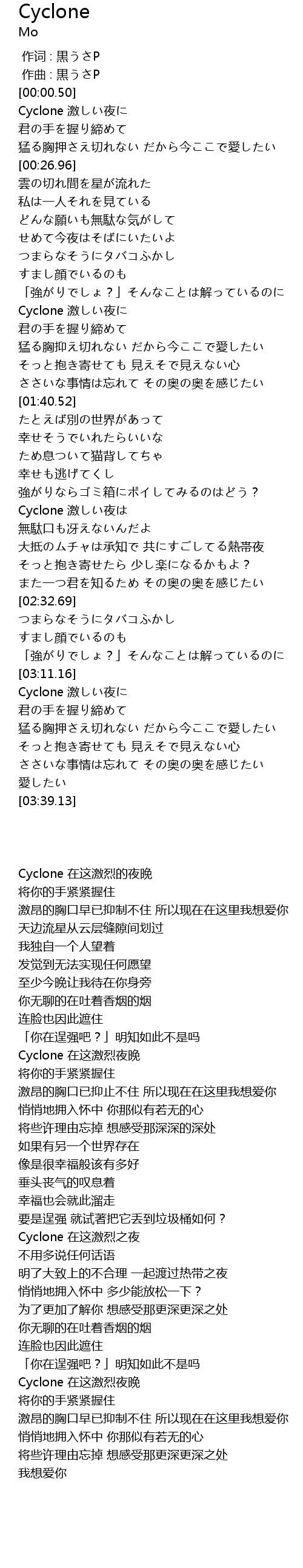 | [01:14.86] | Cyclone ji ye |