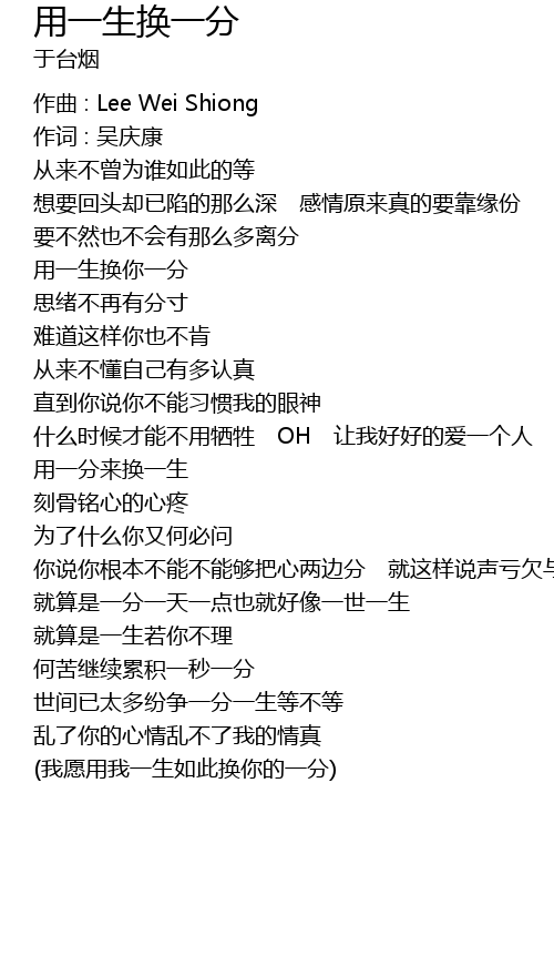 | wǒ yuàn yòng wǒ yī shēng rú cǐ huàn nǐ de yī fēn |