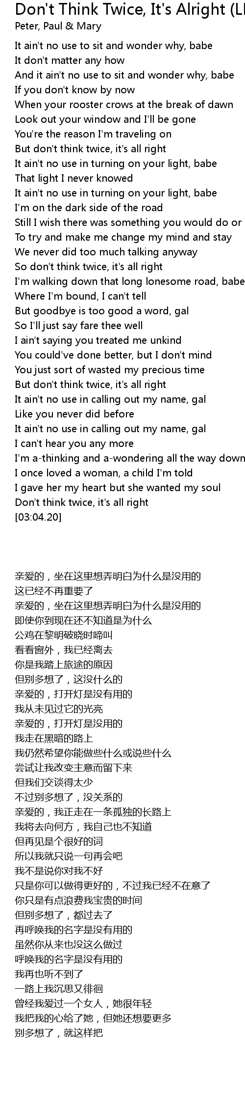Don't think twice, it's all right |