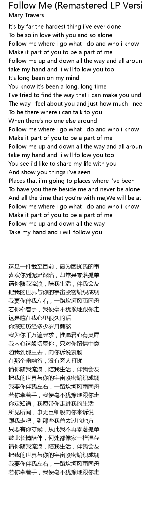 Follow me up and down all the way |
