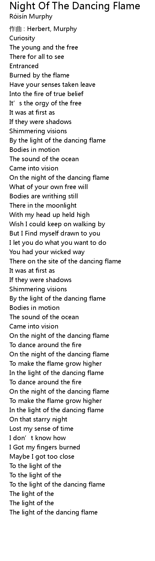 | Song | Night Of The Dancing Flame |
