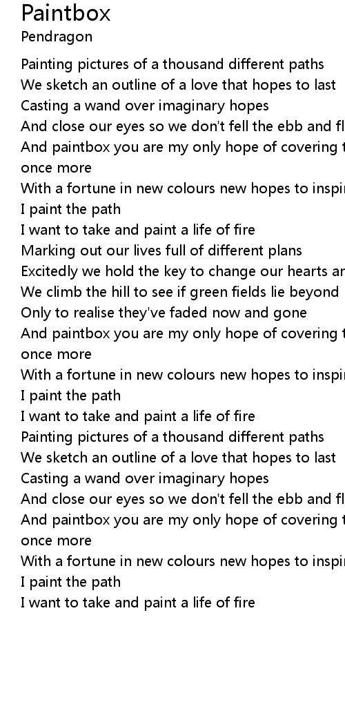 And paintbox you are my only hope of covering the faded past and starting out once more |