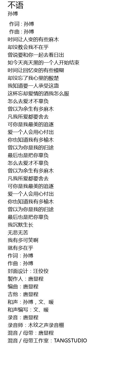 | [04:42.00] | 混音/母带工作室:TANGSTUDIO |