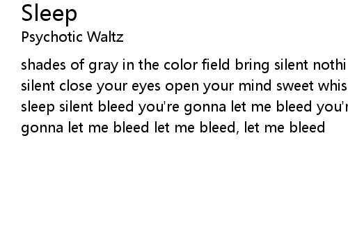 | shades of gray in the color field bring silent nothing for me sleep silent sleep silent close your eyes open your mind sweet whispers nail into you so silent sleep silent bleed you're gonna let me bleed you're gonna let me bleed you're gonna let me bleed let me bleed, let me bleed |
