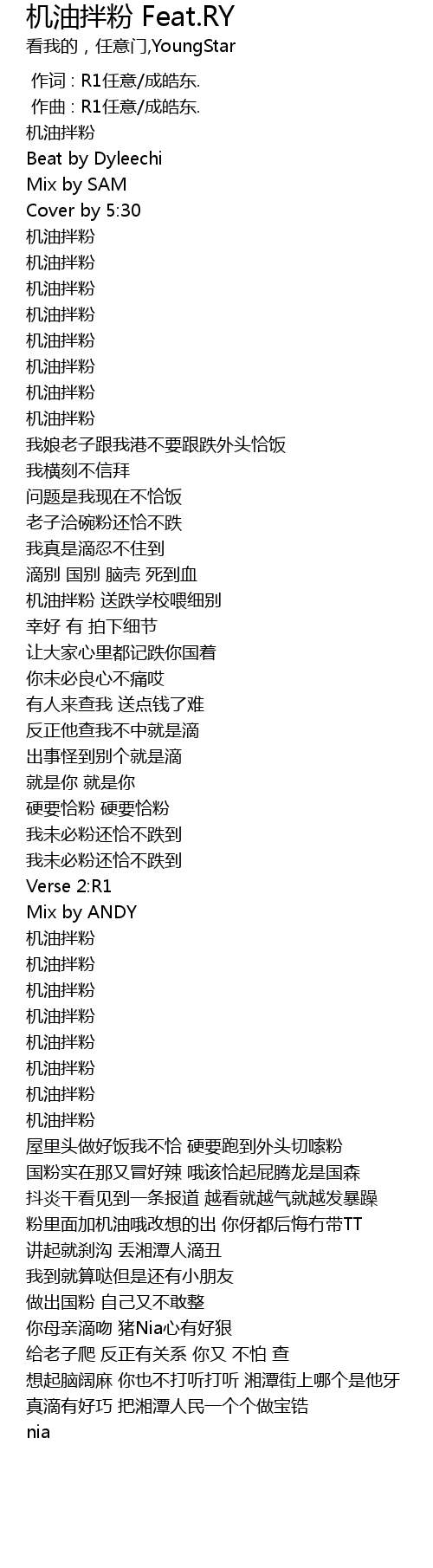 | [01:32.465] | 粉里面加机油哦改想的出 你伢都后悔冇带TT |