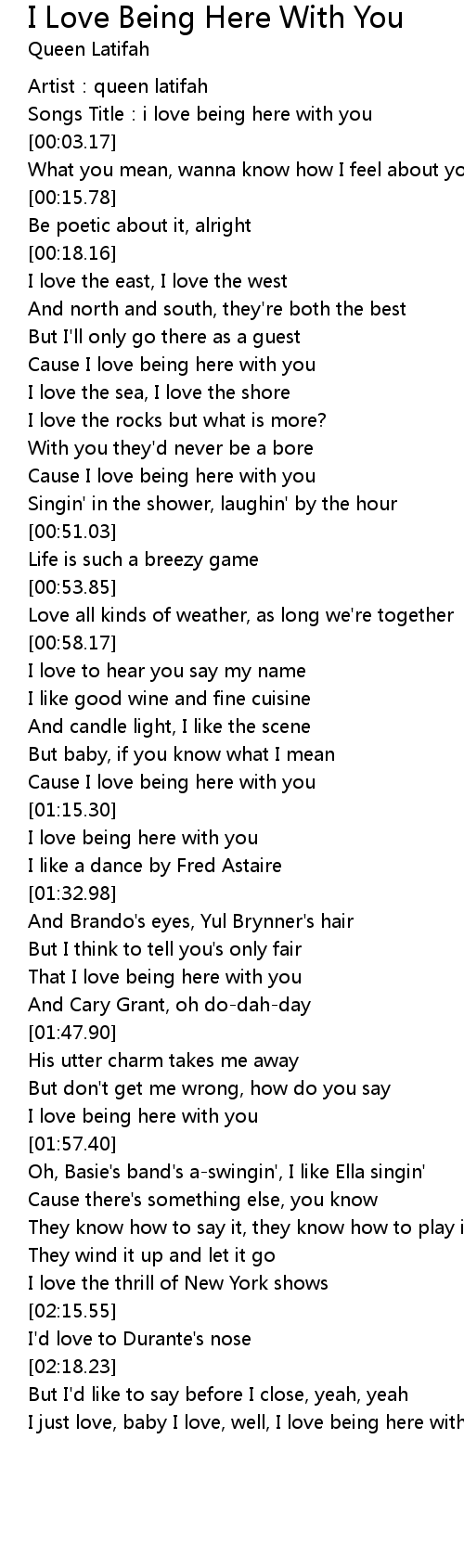 | [02:25.23] | I just love, baby I love, well, I love being here with you |