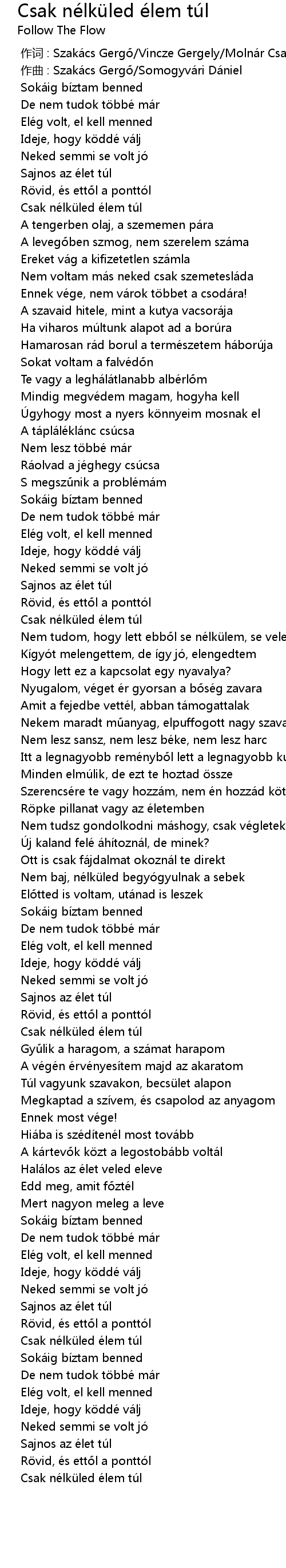 | [00:17.588] | Csak né lkü led é lem tú l |
