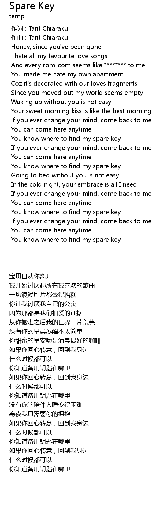| Song | Spare Key |