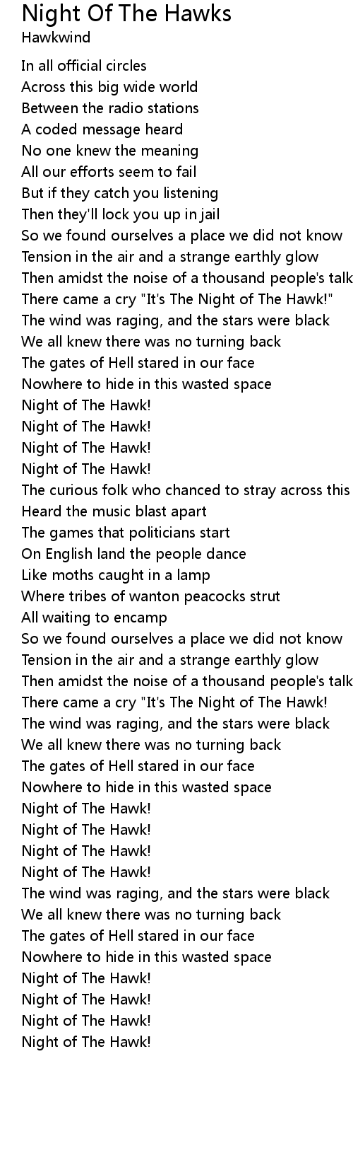 There came a cry "It's The Night of The Hawk!" |