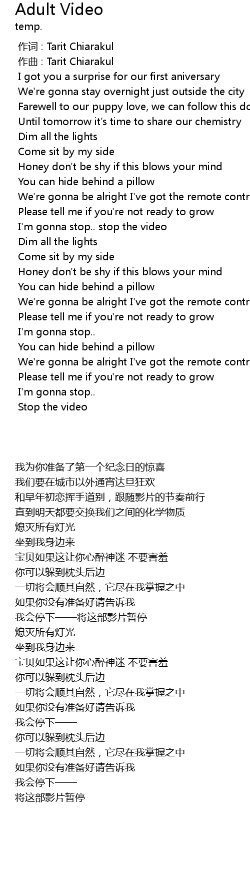 | Song | Adult Video |