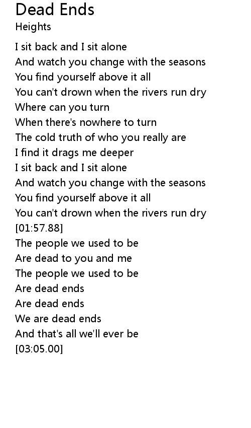 | [03:00.54] | We are dead ends |