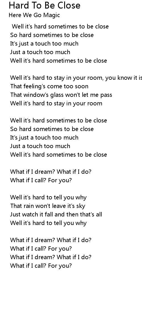 Well it's hard sometimes to be close |