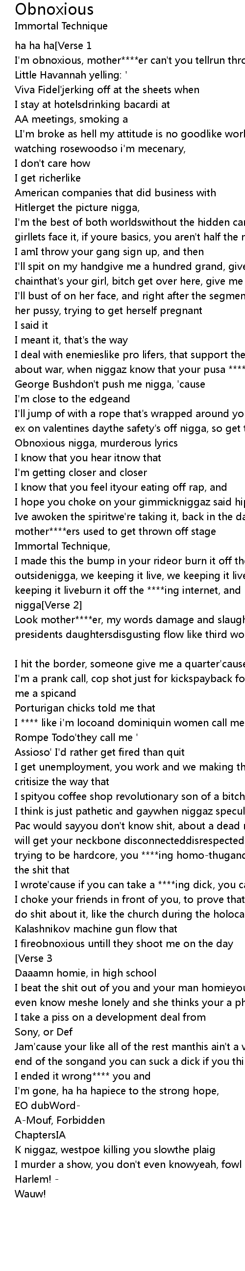 Look mother****er, my words damage and slaughtera raging alcoholic like the presidents daughtersdisgusting flow like third world country tap waterbut before |