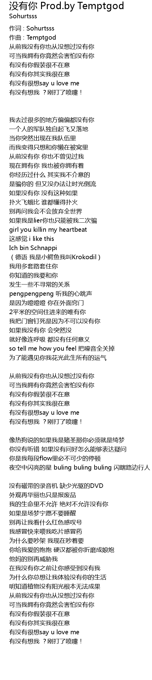 | cóng qián wǒ méi yǒu nǐ yě cóng méi xiǎng guò méi yǒu nǐ | |