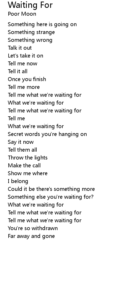 | Tell me what we're waiting for | |