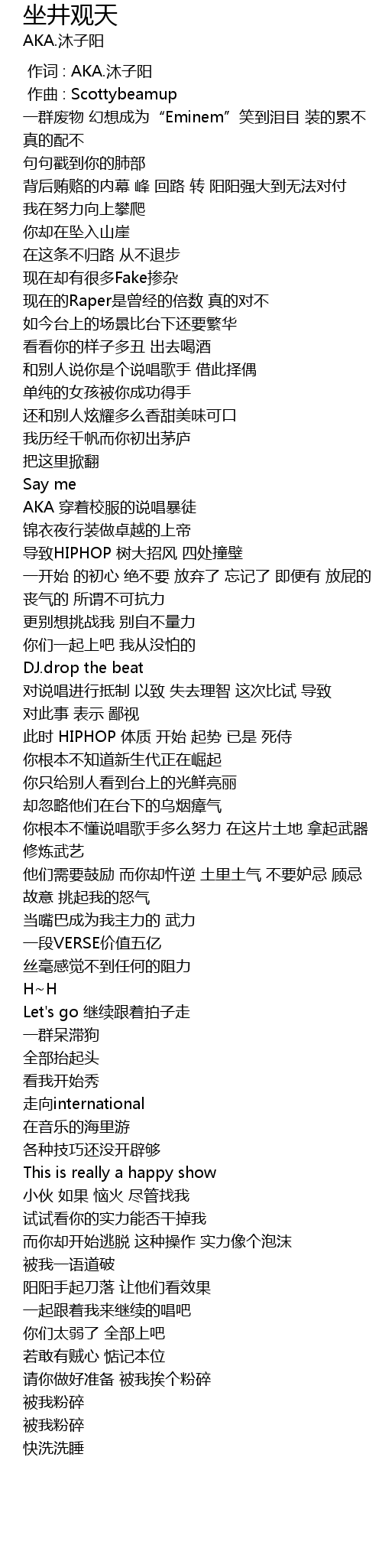 | [00:58.353] | 对说唱进行抵制 以致 失去理智 这次比试 导致 对此事 表示 鄙视 |