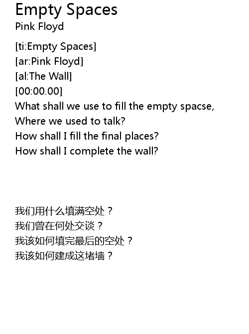 | [01:28.65] | What shall we use to fill the empty spacse, |