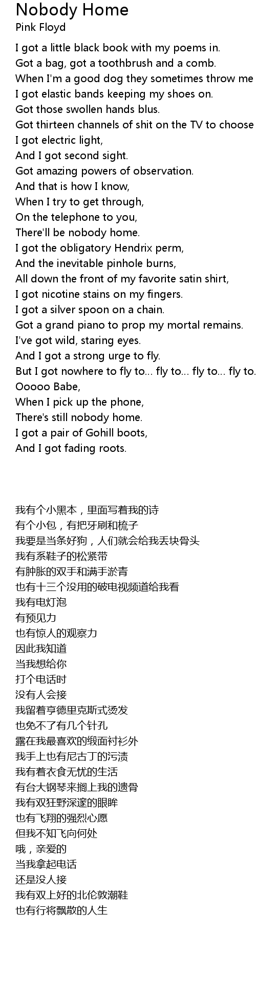 | [02:37.01] | But I got nowhere to fly to fly to fly to fly to. |