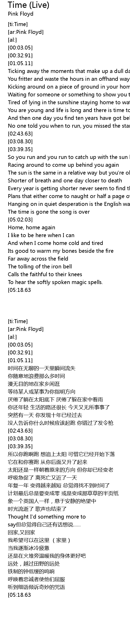 Time (Live) Lyrics