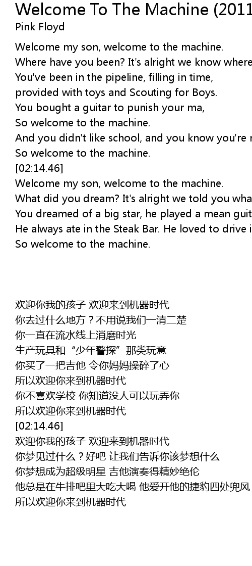 Welcome my son, welcome to the machine. |
